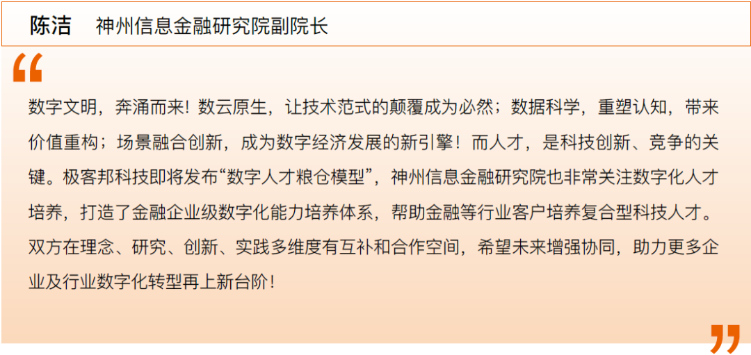 在这个背景下,极客邦科技双数研究院联合神州信息等各行各业的生态伙伴,共同发布《数字人才发展体系:粮仓模型白皮书》,分享在数字经济方面的观察以及在数字人才发展与培养方面的研究和发现,以期帮助企业更好地走上自己的数字化转型之路。